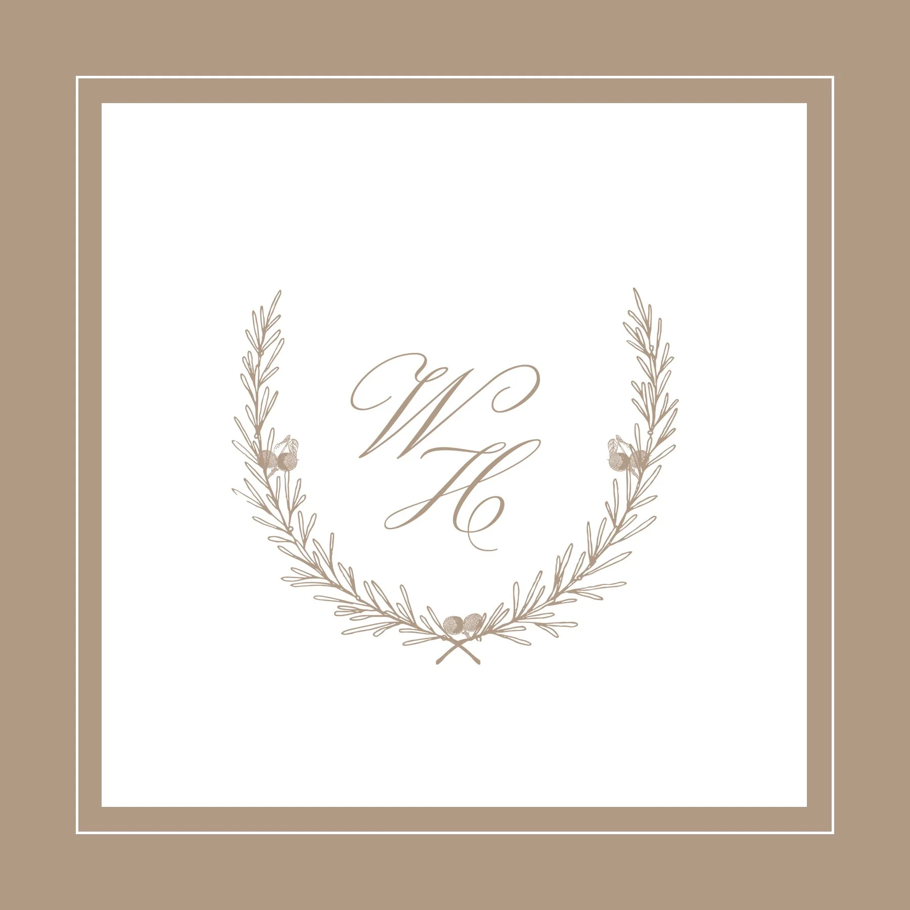 Laurel wreath and monogram for the coordinating logo mark, tiny walnuts included!